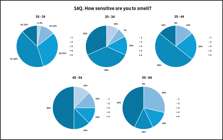 Initiation aux odeurs avec le Langage des Nez® (08/04/2025) : durant la seconde journée, les étudiants ont pu expérimenter la méthode du Langage des Nez® en découvrant des notes odorantes du référentiel, ainsi que des mélanges simples pour montrer la complexité des relevés odorants dans l'environnement.